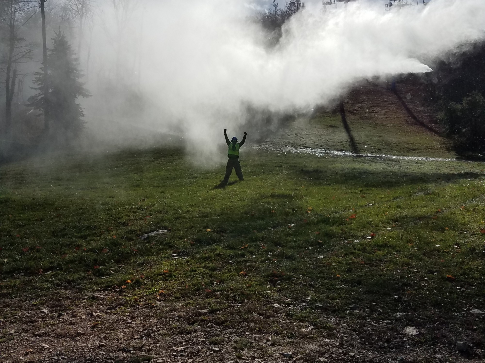With the right temperatures, but poor extended forecast (this week predicting warmer days and rain), this snowmaking run was only a test and trial. As the colder weather settles in, with another forty-one hours (and, hopefully, many, many more) we anticipate ’round the clock snowmaking for (fingers crossed) an early opening.